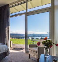- Two guest rooms (both super king or twin) with private outdoor patios, overlooking Lake Te Anau and Fiordland National Park